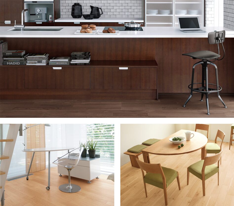 天然木の風合いや繊細な木目、足ざわりまでを考慮した仕様をラインアップ。