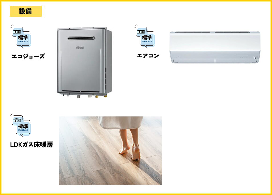 寒さの厳しい富山の気候に合わせて、住まいの冷暖房仕様や給湯方式をお選びいただけます。