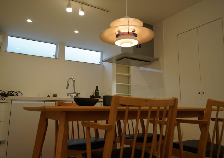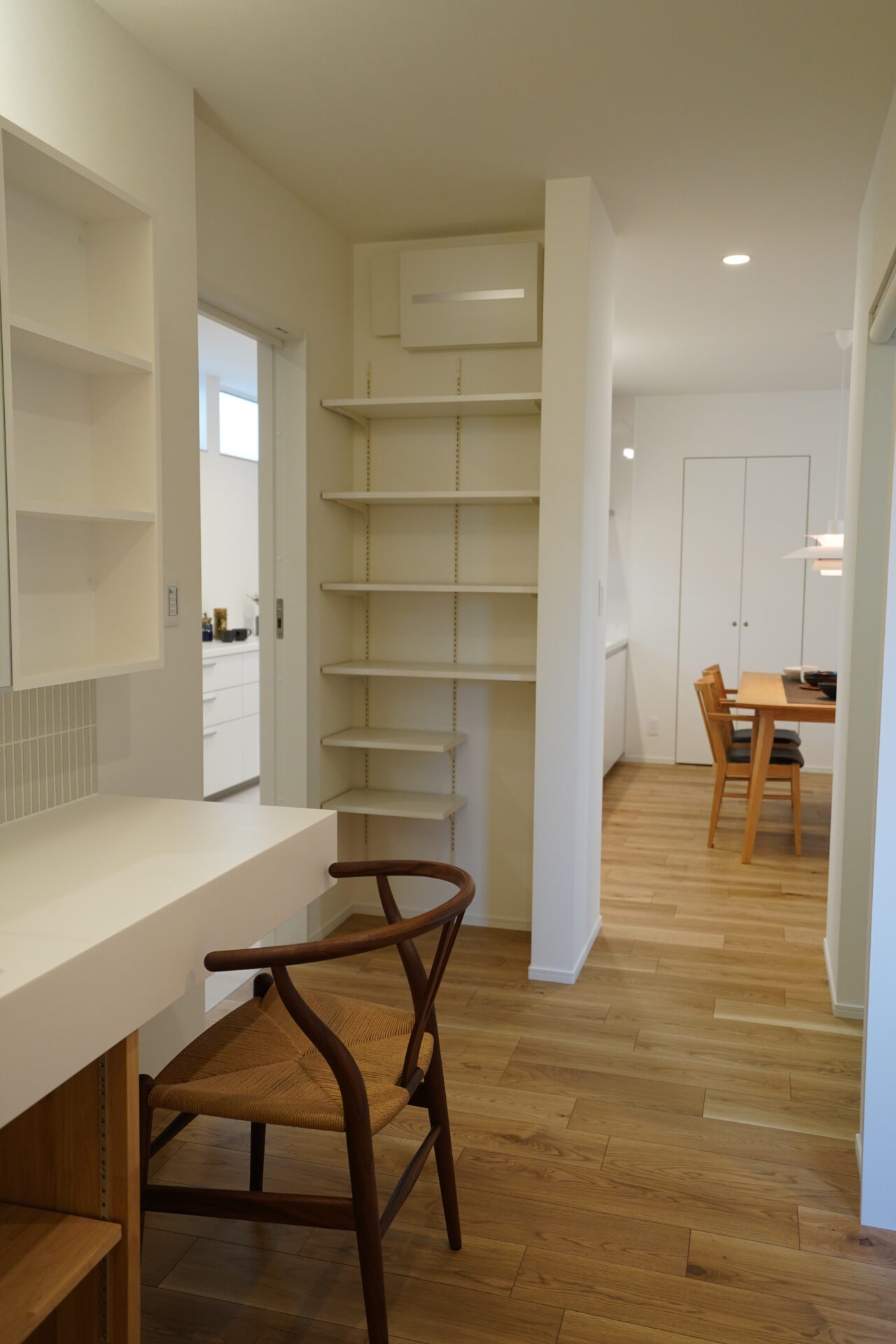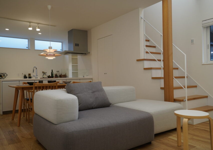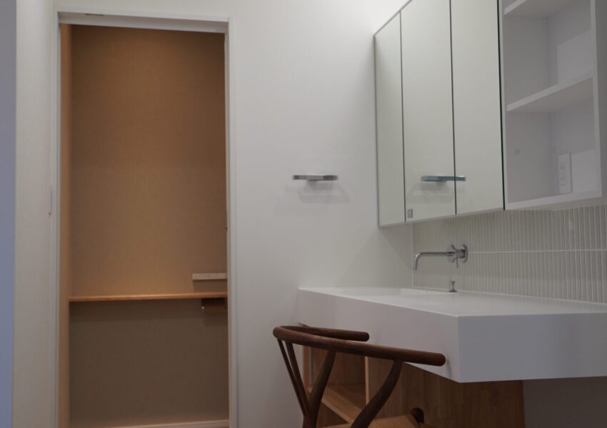 外観は、グレーの塗壁と木目を使い「落ち着いたかっこよさ」と「やわらかいぬくもり」が同時に見えるように、室内は造作洗面台や充実したユーティリティで、見せたい場所はデザイン良く、見せたくない家事スペースはスマートに隠す計画としました。大きな吹き抜けもあるので、部屋全体の室温が一定になるように断熱・気密はGX志向型住宅基準としました。