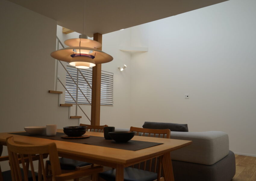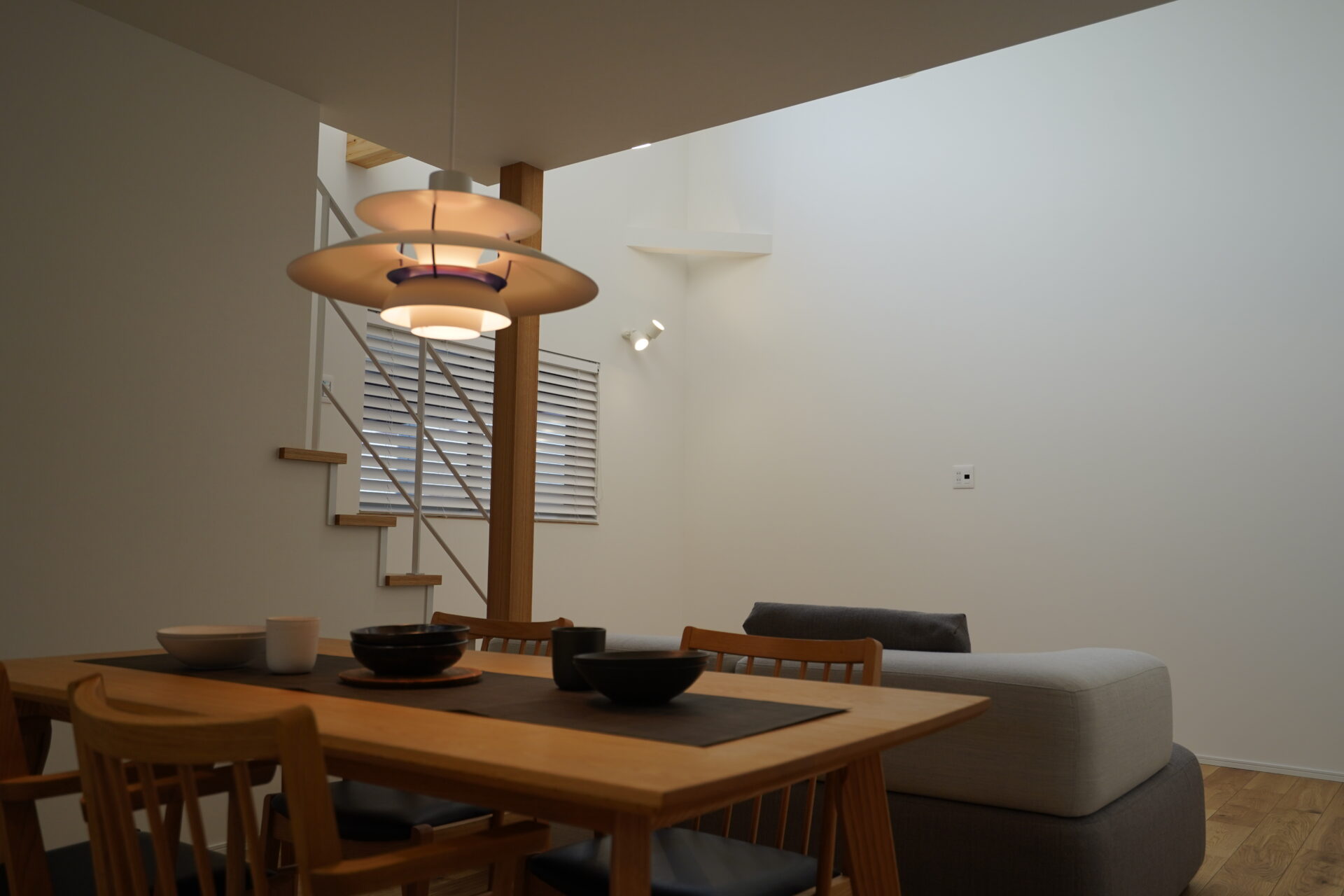 「大きな吹き抜けと1階完結の暮らし。光も家事も、ここで完結する家。」